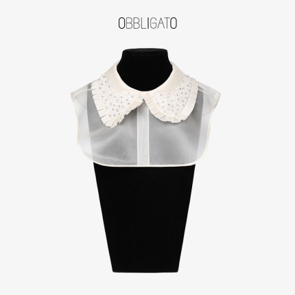 【不参与满减】OBBLIGATO奥丽嘉朵2021春季新款白色桑蚕丝重工珠钻假领子1C31193020